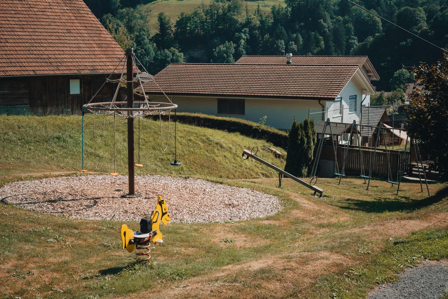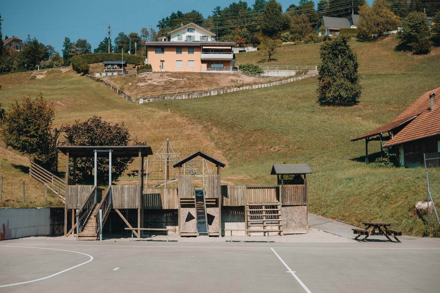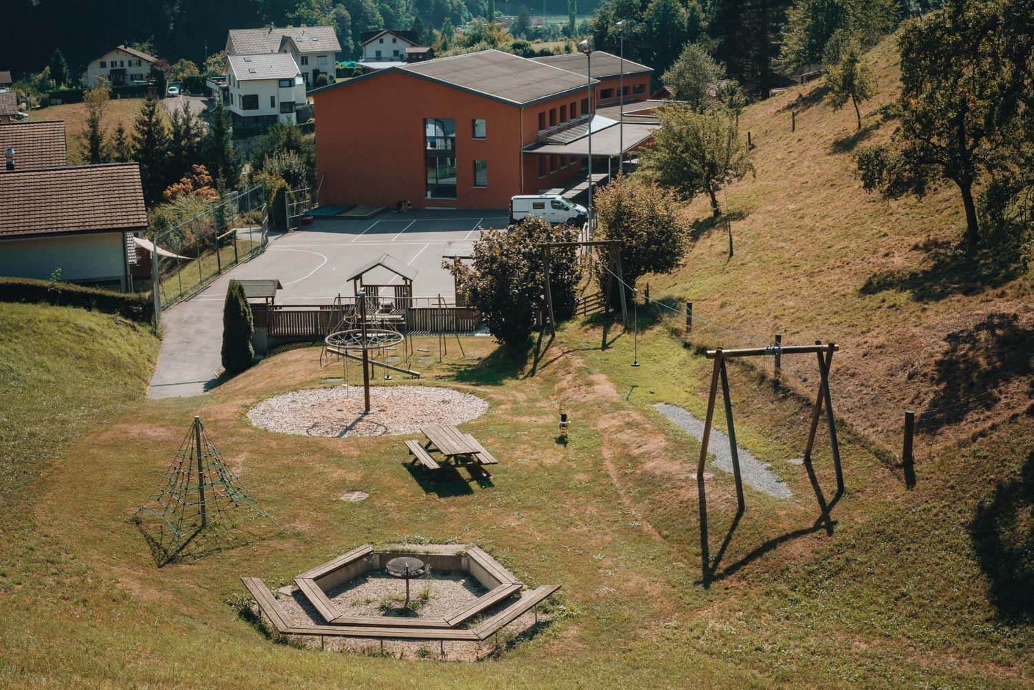 Beim Schulhaus Unterdorf befindet sich eine schöne Picknick-Stelle inkl. Grillmöglichkeit. Hier können sich die Kinder auf dem Spielplatz austoben, während die Erwachsenen gemütlich eine Wurst bräteln.