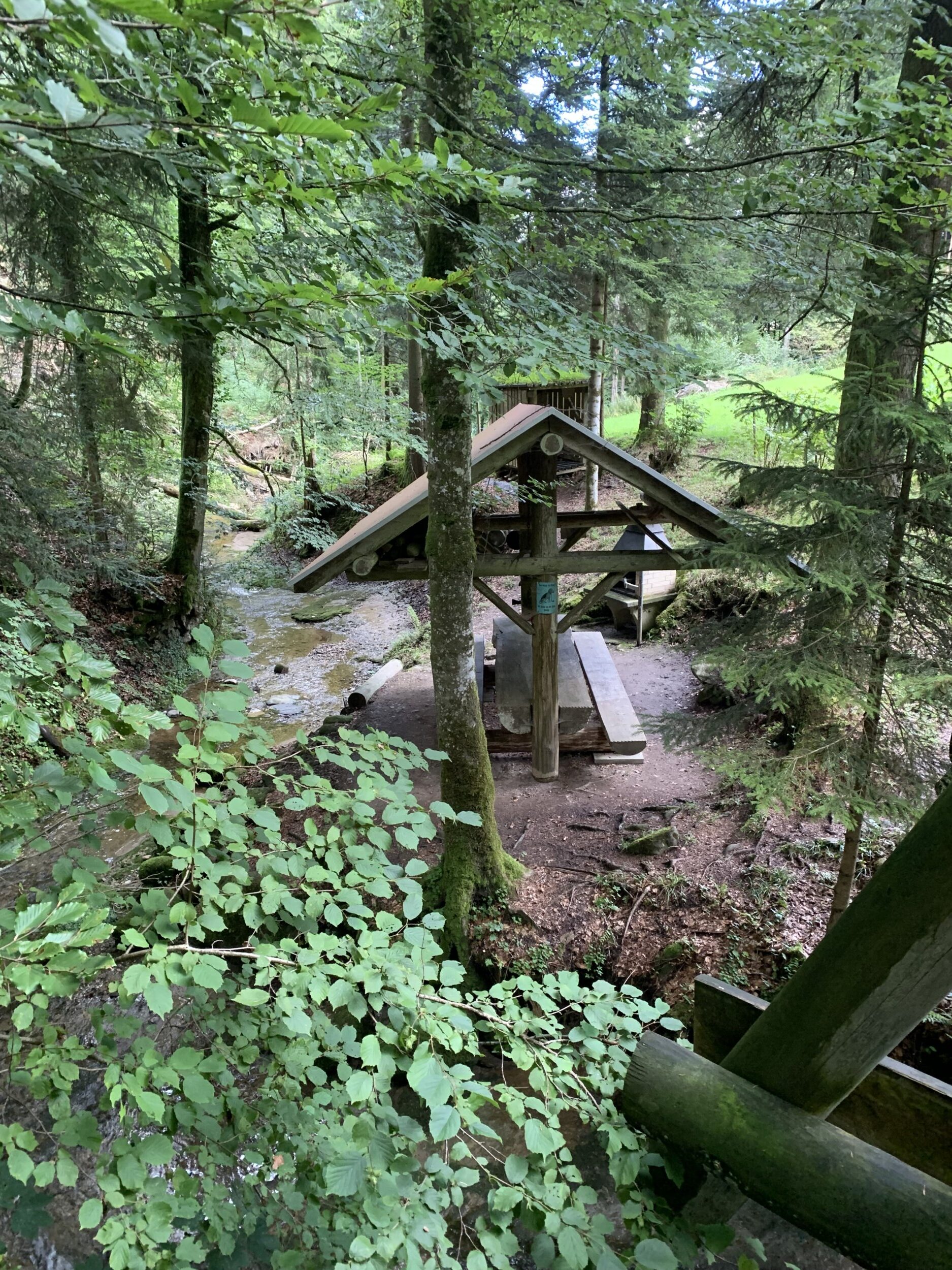 Die gemütliche Grillstelle mit dem grossen Holztisch lädt zum Verweilen ein. Die Kraft des Wassers ist besonders gut spürbar und spült alle Alltagssorgen weg.